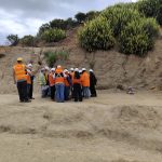 La jornada fue encabezada por la profesora Blanca Gana, geóloga y docente del curso, quien junto a un equipo de ayudantes y académicos guió a los estudiantes en diversas actividades prácticas. En una primera parte, los alumnos aprendieron a utilizar instrumentos geológicos —como la brújula— y revisaron conceptos fundamentales aplicados directamente en el yacimiento.