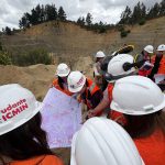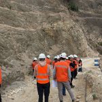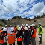 Más tarde, el grupo descendió por la rampa principal de la mina acompañado por los ingenieros de minas Alex Carpanetti y Daniel Pinto, quienes compartieron su experiencia profesional y explicaron aspectos clave del diseño y operación de una faena minera. Este recorrido permitió a los estudiantes comprender de manera práctica cómo se desarrollan los proyectos mineros en terreno.