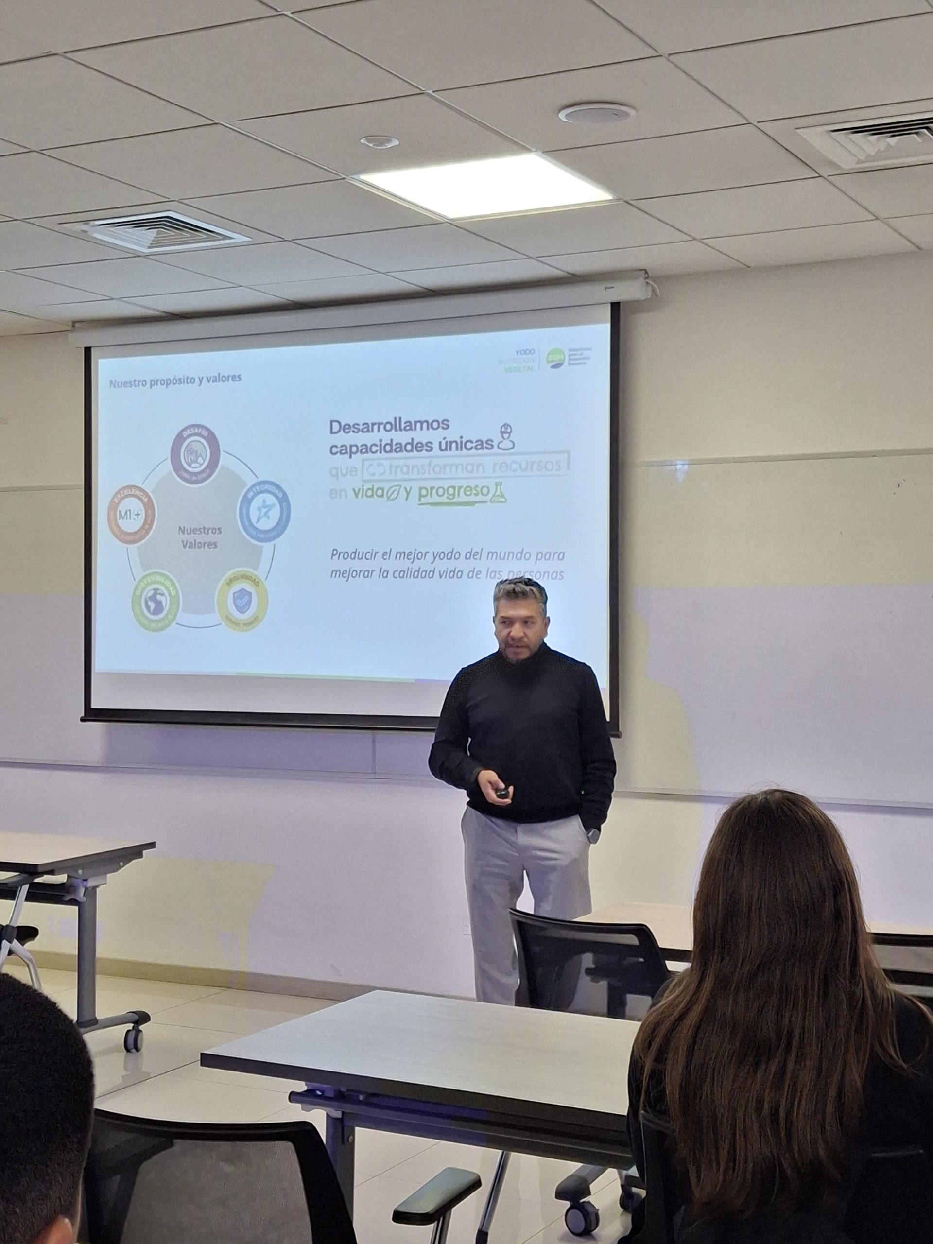 Durante la charla, los profesionales de SQM profundizaron en los procesos y aplicaciones del yodo, destacando el papel fundamental que desempeña Chile como principal productor mundial de este mineral, con un tercio del yodo del mundo producido en el país. Las aplicaciones del yodo son diversas, abarcando áreas como la medicina, la alimentación, la fabricación de pinturas, los retardantes de llama en neumáticos y el uso en tecnologías electrónicas, como las pantallas LED.  Además, tuvieron la oportunidad de conversar con los estudiantes sobre las acciones y buenas prácticas implementadas para mantener los altos estándares de seguridad operacional, cuidado del medio ambiente y relacionamiento con las comunidades.