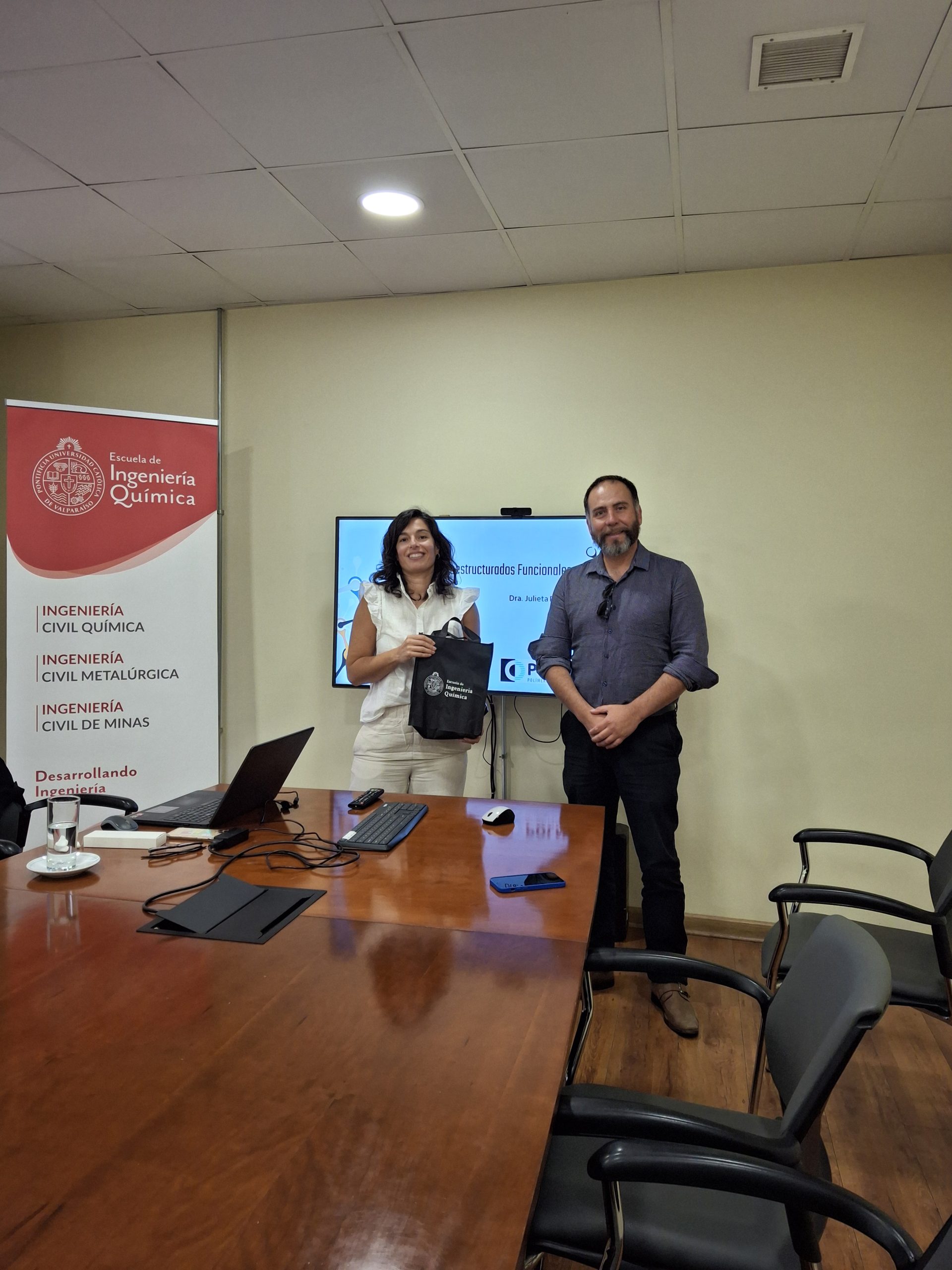 El miércoles 11 y jueves 12 de diciembre, la Escuela de Ingeniería Química recibió la visita de la Dra. Julieta Puig, investigadora del Instituto de Investigaciones en Ciencia y Tecnología de Materiales (INTEMA), organismo dependiente del Consejo Nacional de Investigaciones Científicas y Técnicas (CONICET) y de la Universidad Nacional de Mar del Plata (UNMdP). Esta visita se enmarcó en una jornada de intercambio de investigación organizada por el Magíster en Ingeniería de Procesos (MIP), cuyo objetivo principal fue la participación de la Dra. Puig en el examen de grado del MIP de Martín Ayala, de quien fue profesora correlatora de su tesis de magíster. Además, la vinculación generada a través de esta cotutoría resultó en dos publicaciones WoS.