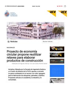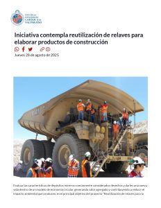Recientemente, UCV Radio y PUCV Noticias destacaron un innovador proyecto de reutilización de relaves, liderado por Jaime Morales, académico de la Escuela de Ingeniería Química y director del Centro de Minería de la Pontificia Universidad Católica de Valparaíso (PUCV). Se trata de la iniciativa “Reutilización de relaves para la elaboración de productos de construcción”, la cual forma parte de los proyectos financiados por el Fondo Regional para la Productividad y el Desarrollo 2025 (FRPD) del Gobierno Regional de Valparaíso.