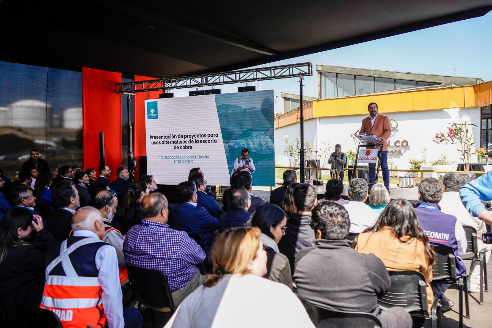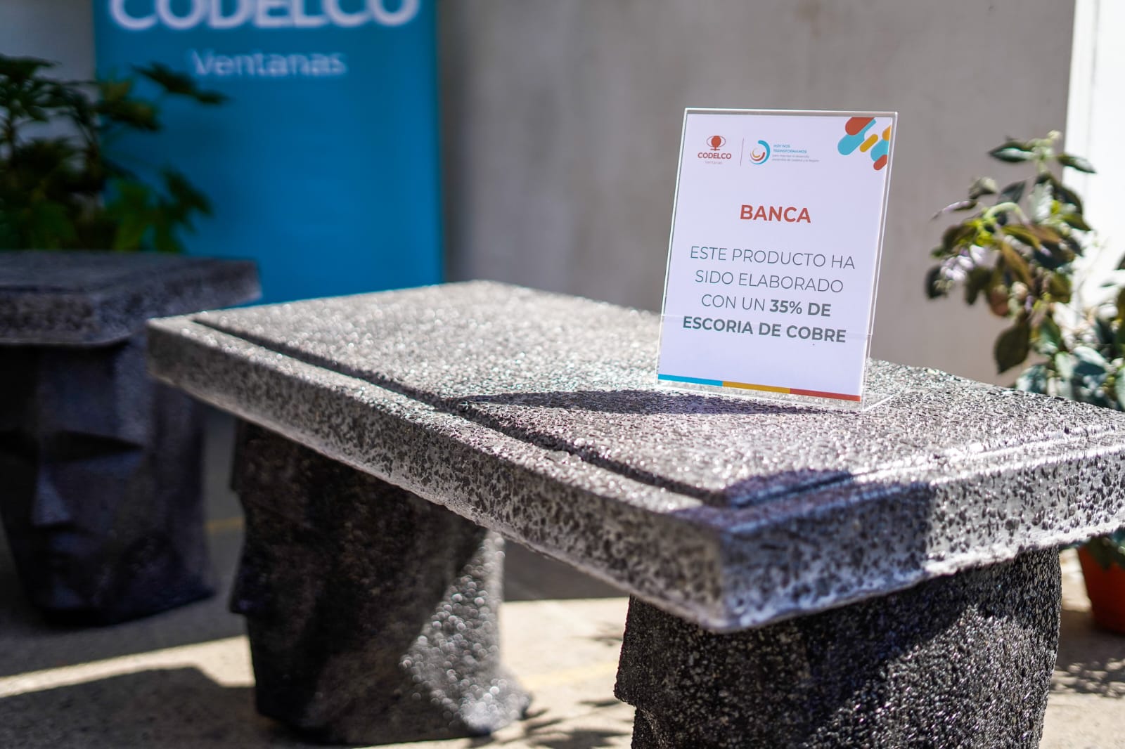 "Este estacionamiento se pavimentó con una carpeta asfáltica elaborada con un 20% de escoria de cobre, en reemplazo de áridos naturales", se lee en la placa conmemorativa descubierta el lunes 24 de marzo en el andén de llegada de los buses del personal de Codelco División Ventanas, en Puchuncaví. Este espacio fue reinaugurado en una ceremonia que contó con la presencia de la Ministra de Minería, Aurora Williams, el gerente general de Codelco Ventanas, Ricardo Weishaupt, el delegado presidencial regional, Yanino Riquelme, el alcalde de Puchuncaví, Marcos Morales, así como seremis, jefes de servicio, representantes de la comunidad y otras autoridades.