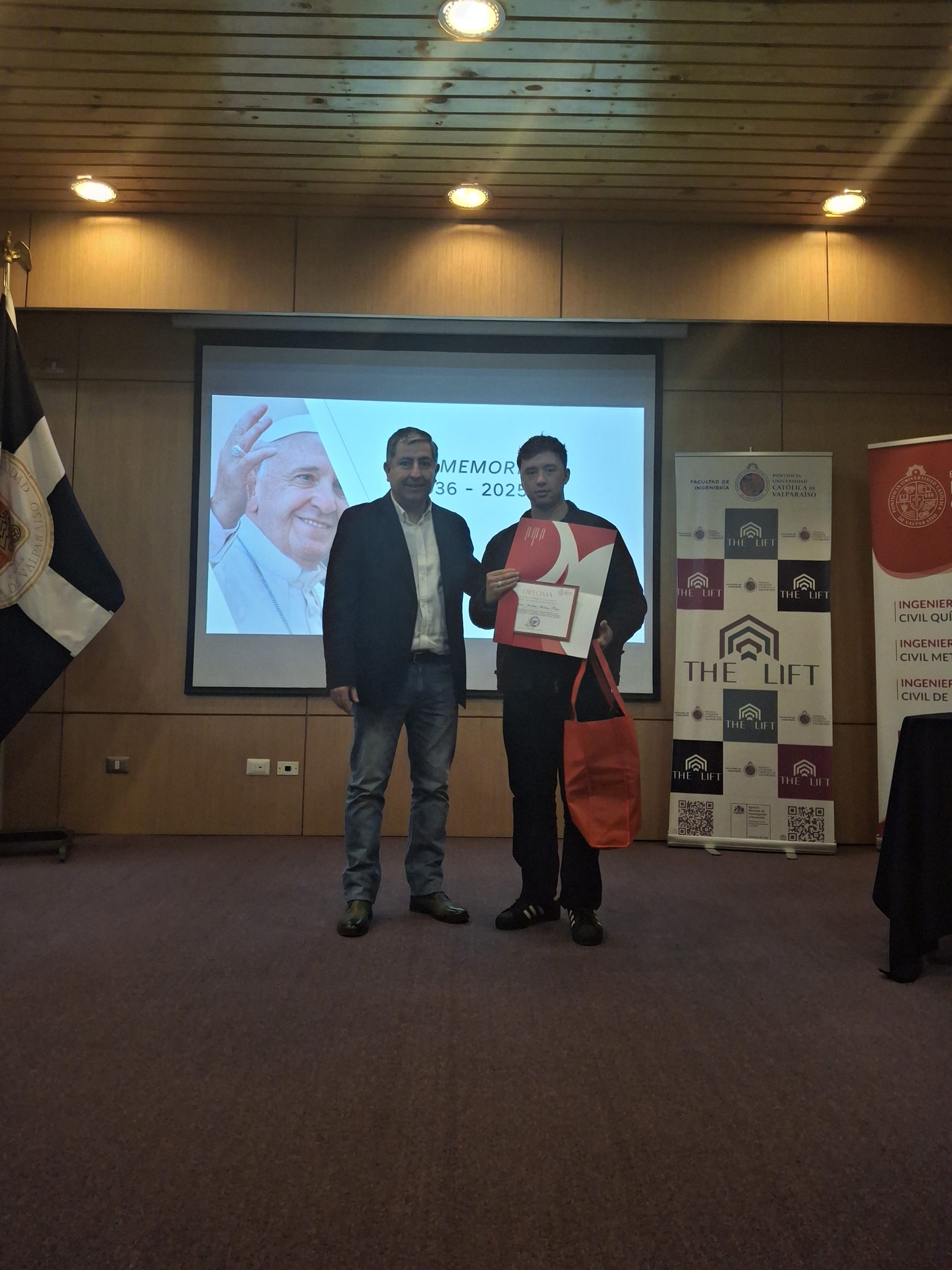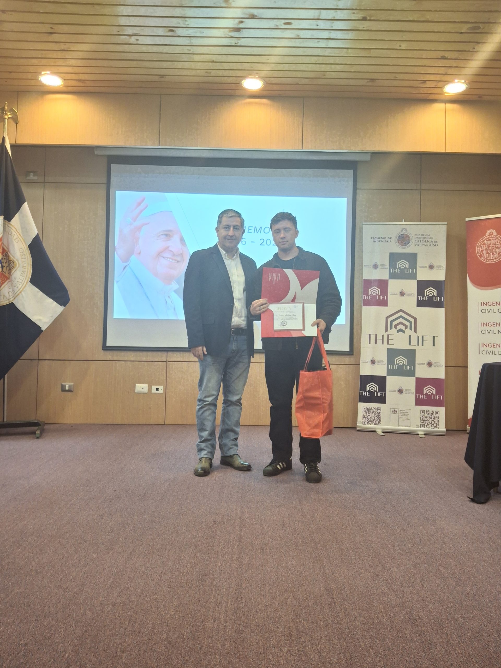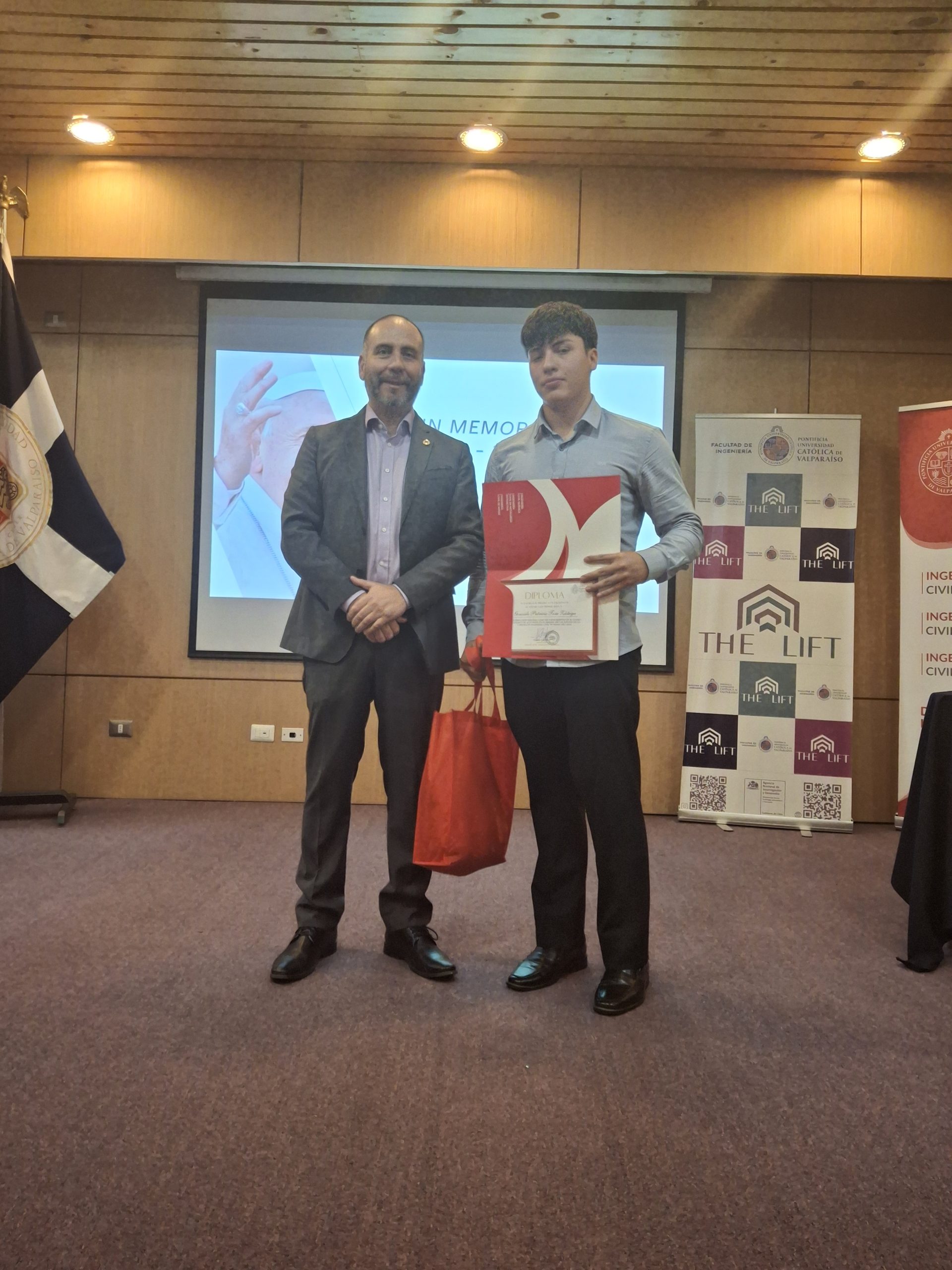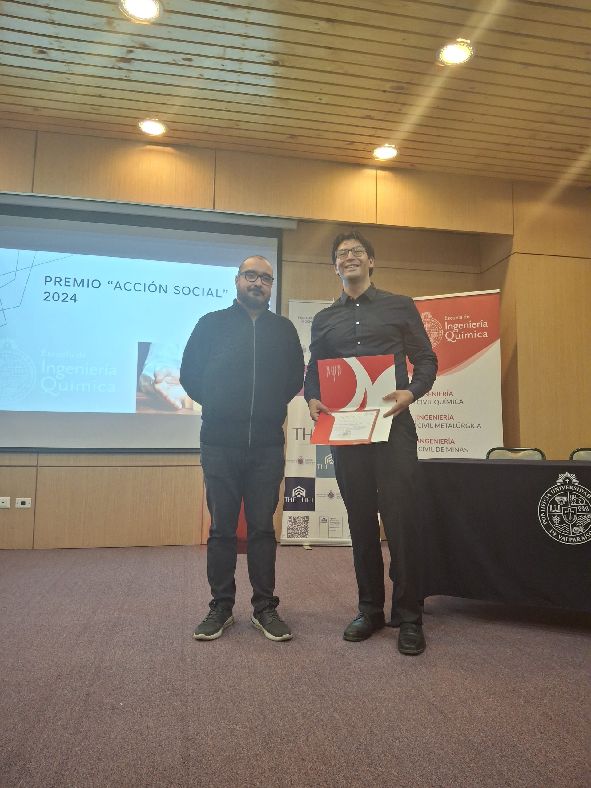 Estos premios fueron entregados por el decano de la Facultad de Ingeniería, Gianni Olguín, y el ingeniero químico Jorge Salgado, miembro del directorio de la Asociación de Egresados de la EIQ, respectivamente.