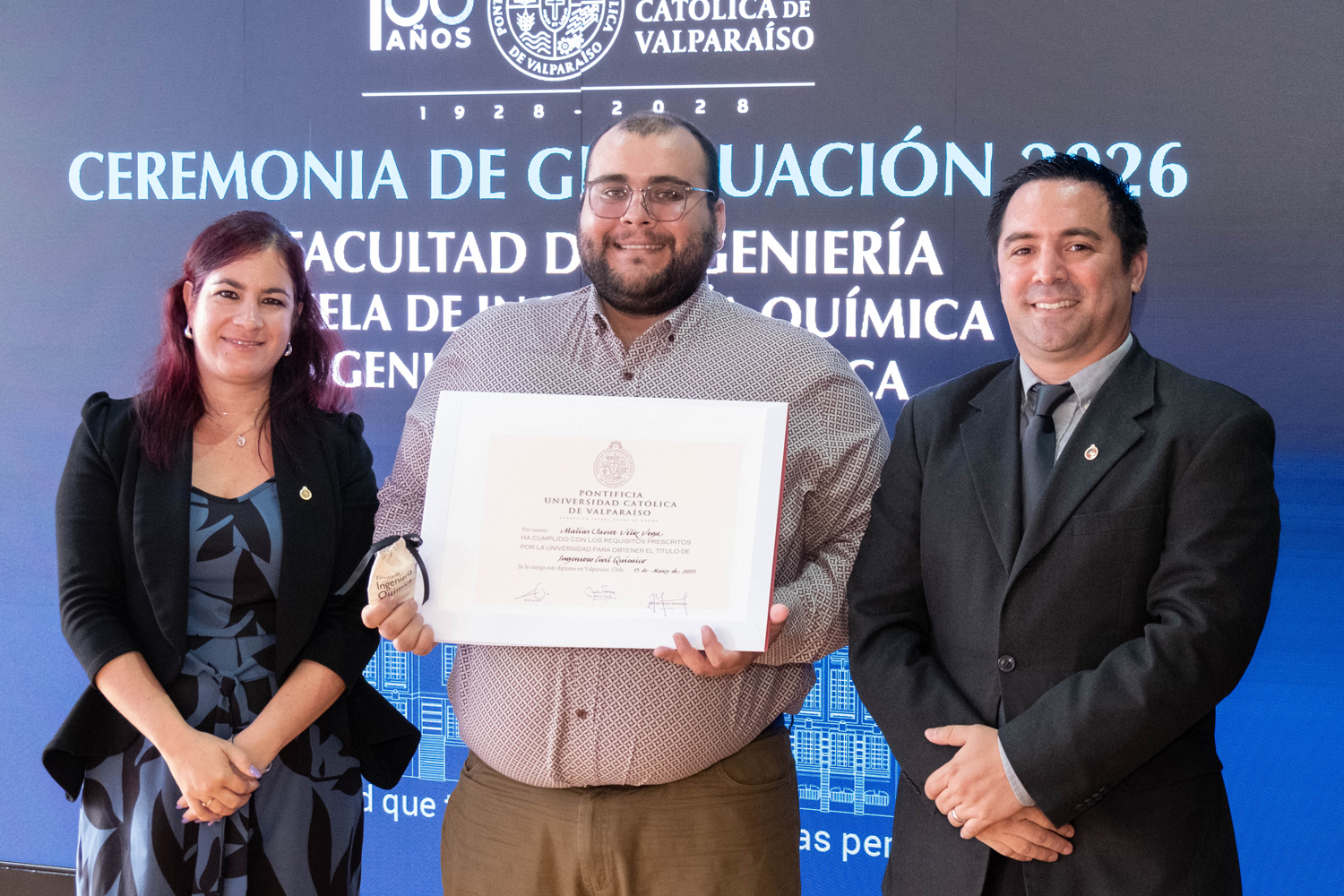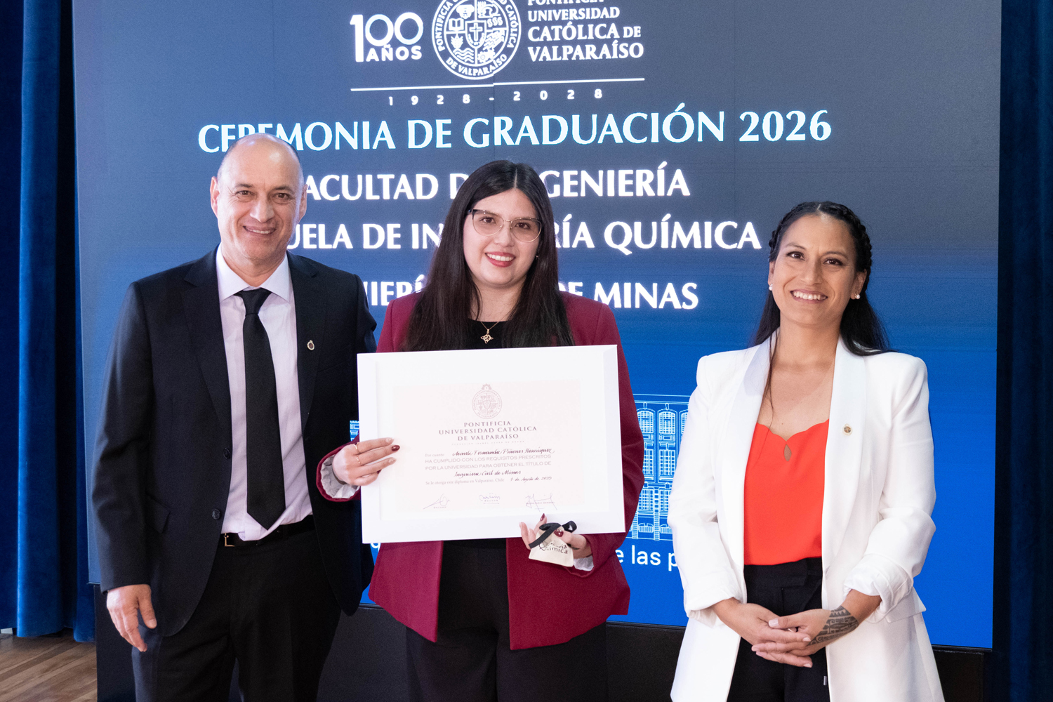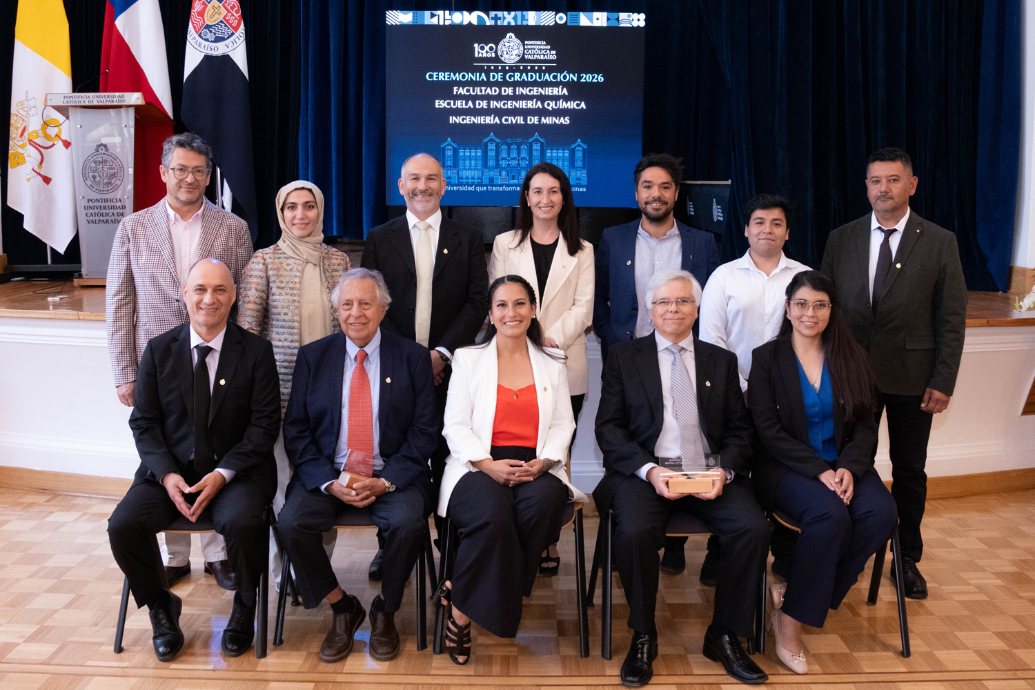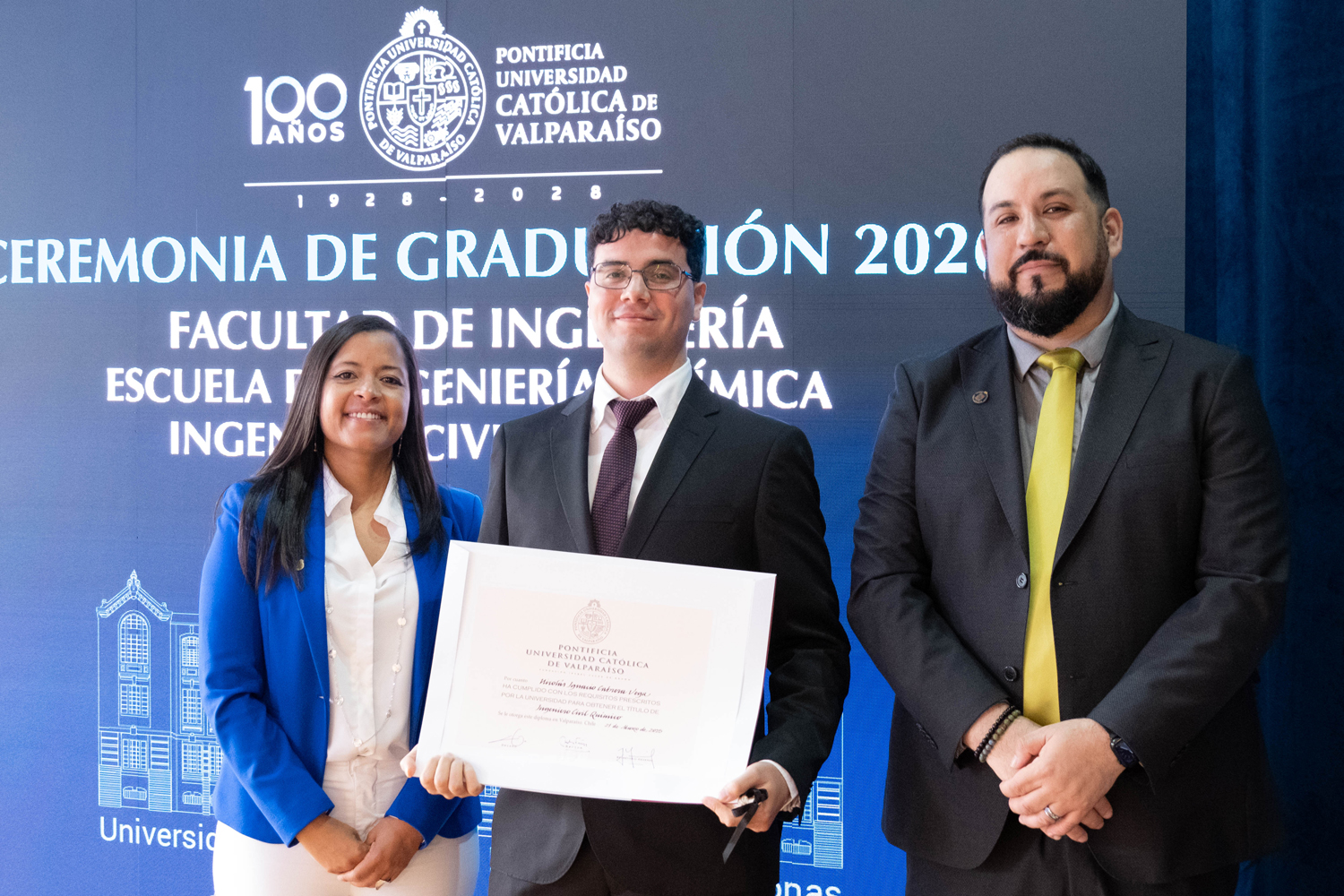Asimismo, en el marco de las ceremonias se entregaron diversos reconocimientos, entre ellos el premio a la mejor graduada o graduado por carrera de la generación 2025, además del Premio Alumni 2025, otorgado por la Red Alumni PUCV. Este galardón distingue a estudiantes que han demostrado un fuerte compromiso con su Escuela y con la comunidad universitaria, reflejando a través de su trayectoria los valores institucionales de la PUCV.
