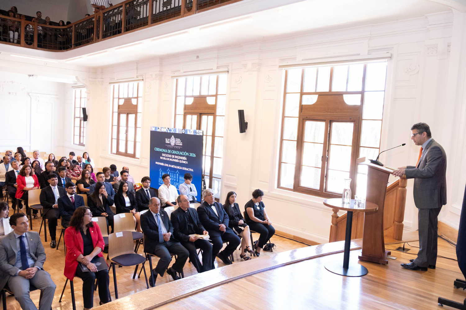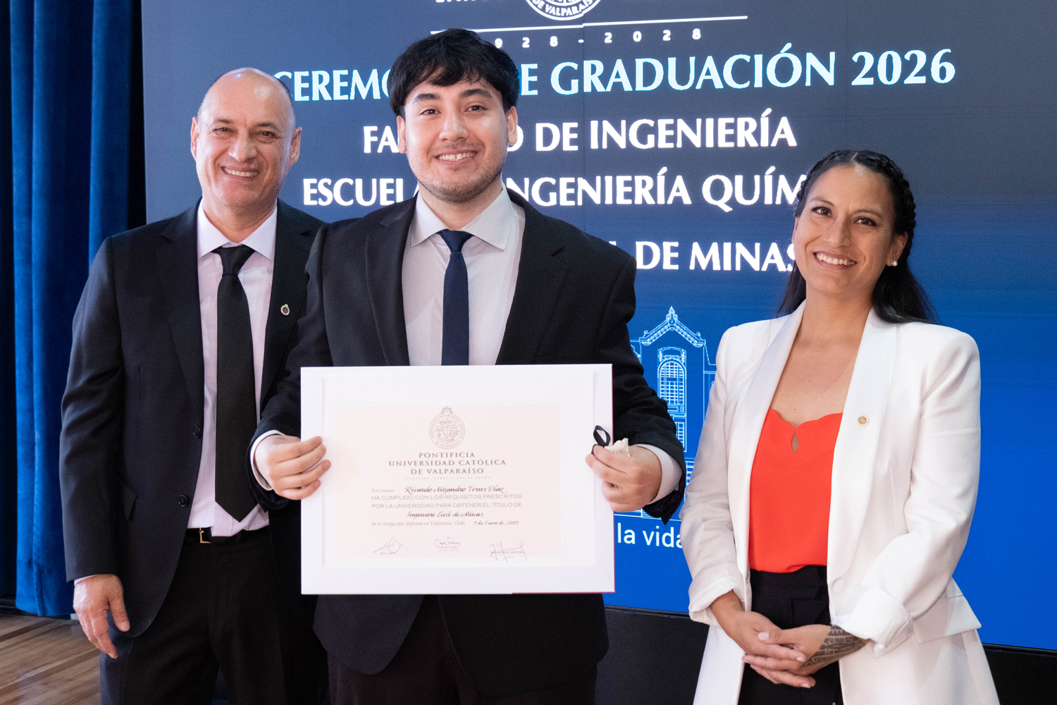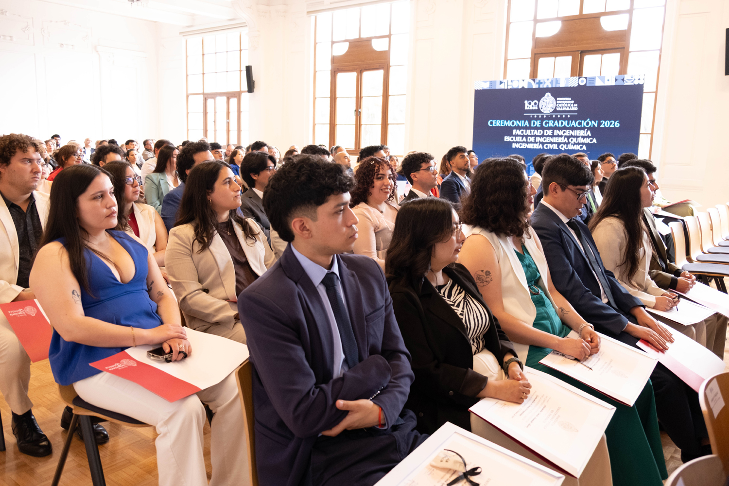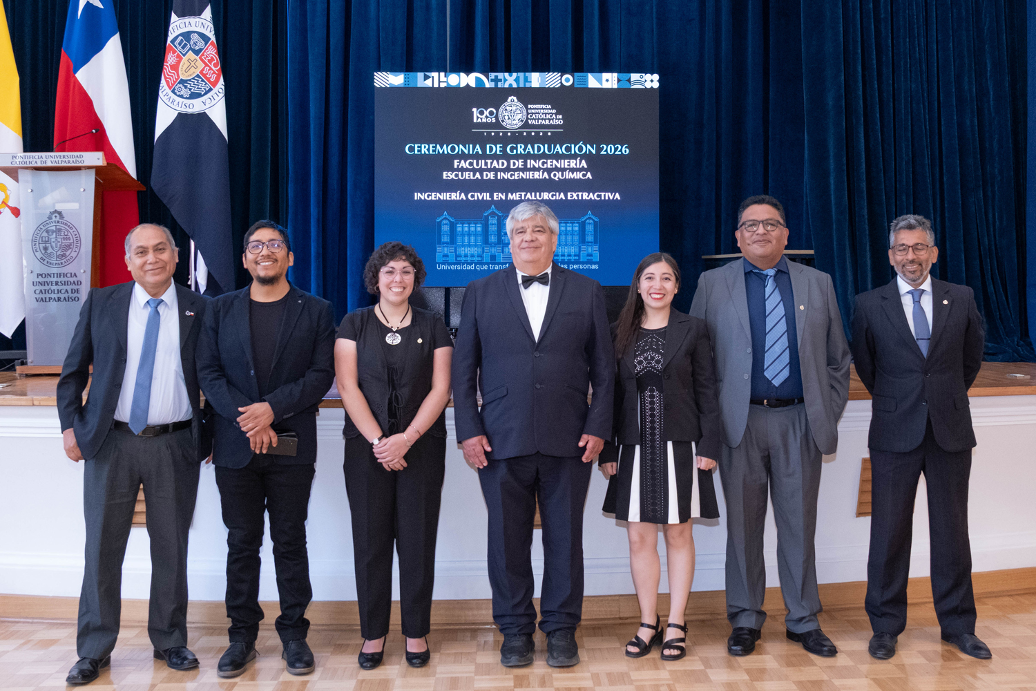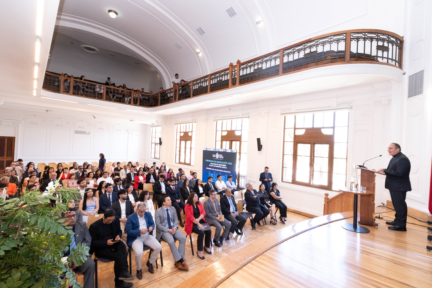 La jornada del miércoles 14 de enero estuvo marcada por la titulación de 49 egresados y egresadas de Ingeniería Civil Química. Posteriormente, el jueves 15 de enero se realizó la ceremonia correspondiente a Ingeniería Civil en Metalurgia Extractiva, en la que 29 profesionales recibieron sus diplomas. Finalmente, el viernes 16 de enero se tituló a 46 nuevos profesionales de Ingeniería Civil de Minas.