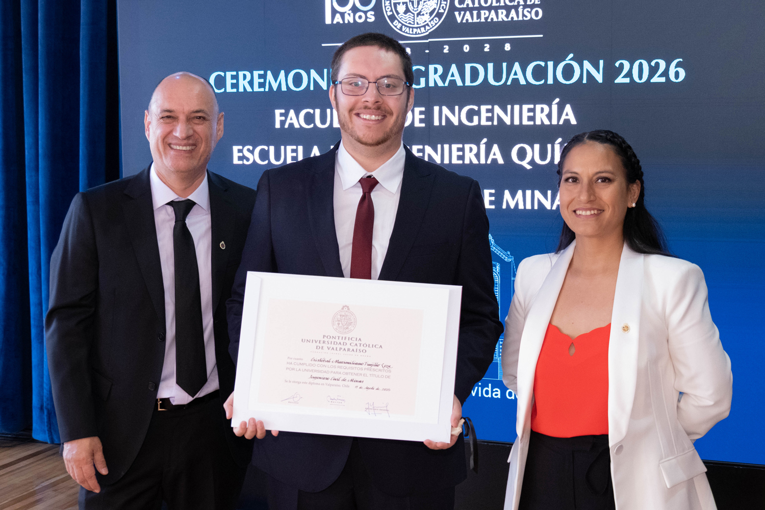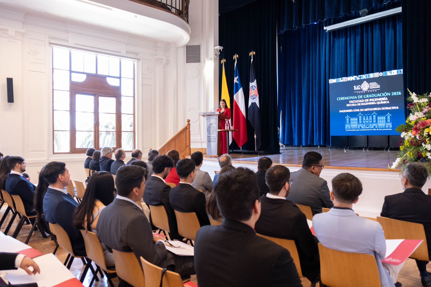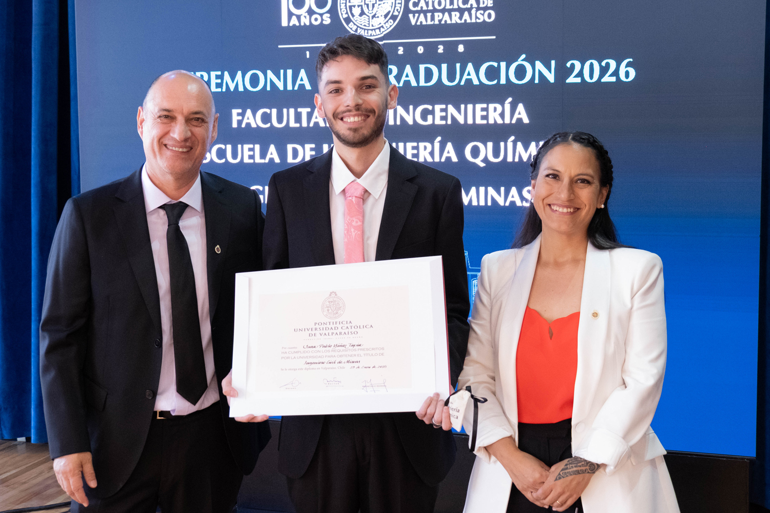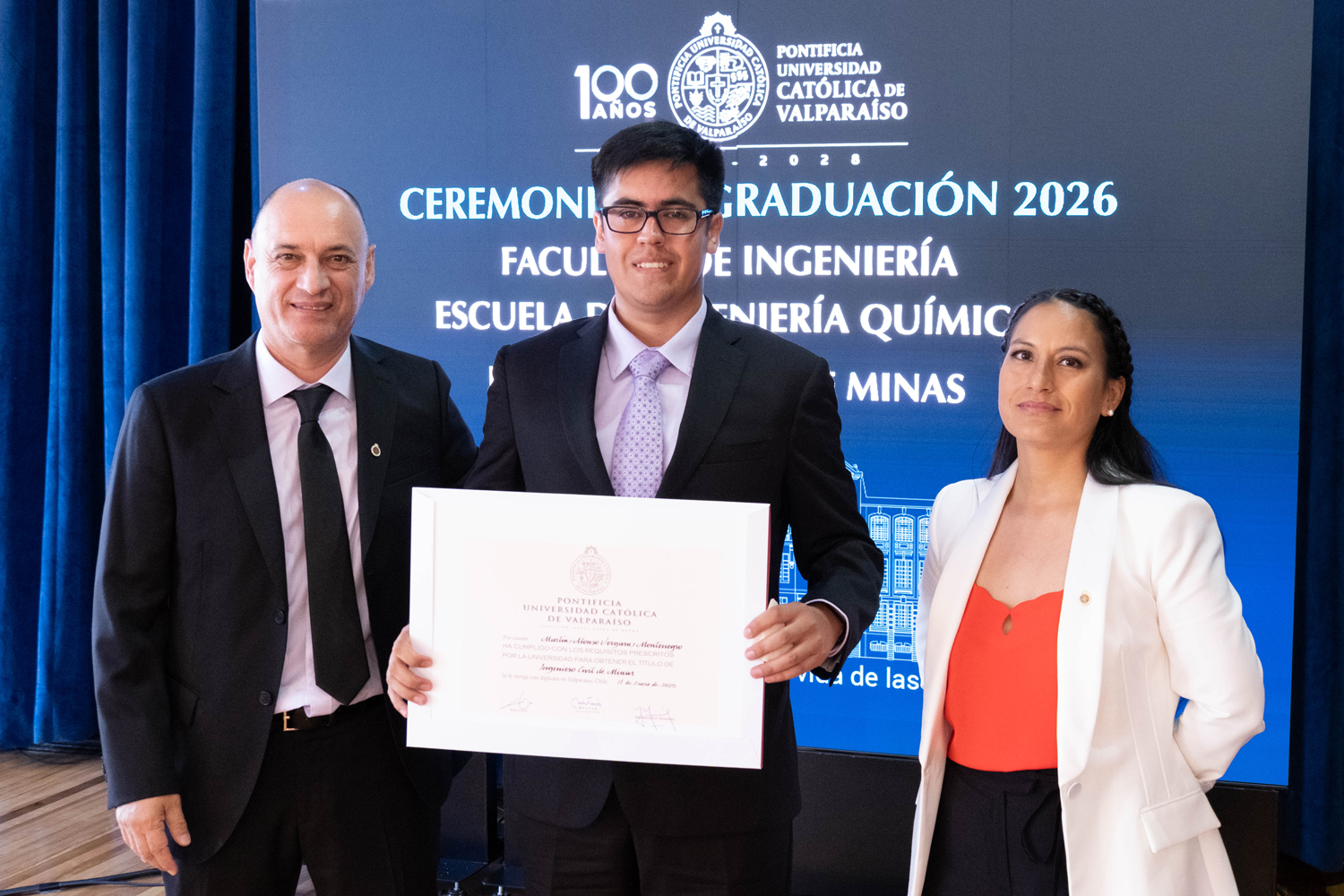 La jornada del miércoles 14 de enero estuvo marcada por la titulación de 49 egresados y egresadas de Ingeniería Civil Química. Posteriormente, el jueves 15 de enero se realizó la ceremonia correspondiente a Ingeniería Civil en Metalurgia Extractiva, en la que 29 profesionales recibieron sus diplomas. Finalmente, el viernes 16 de enero se tituló a 46 nuevos profesionales de Ingeniería Civil de Minas.