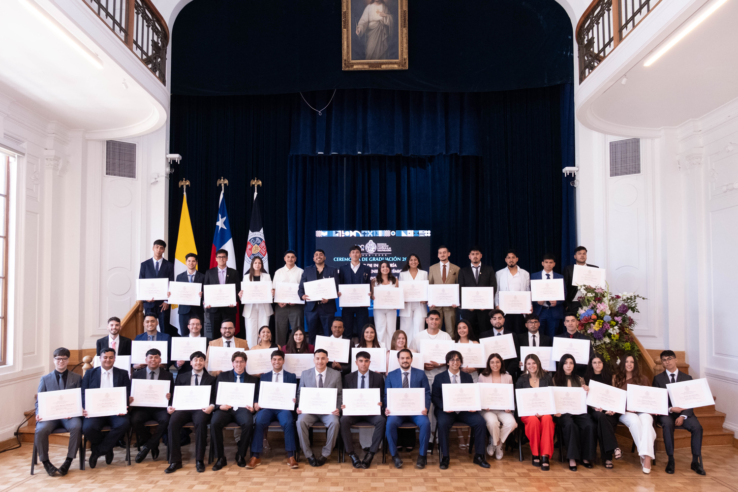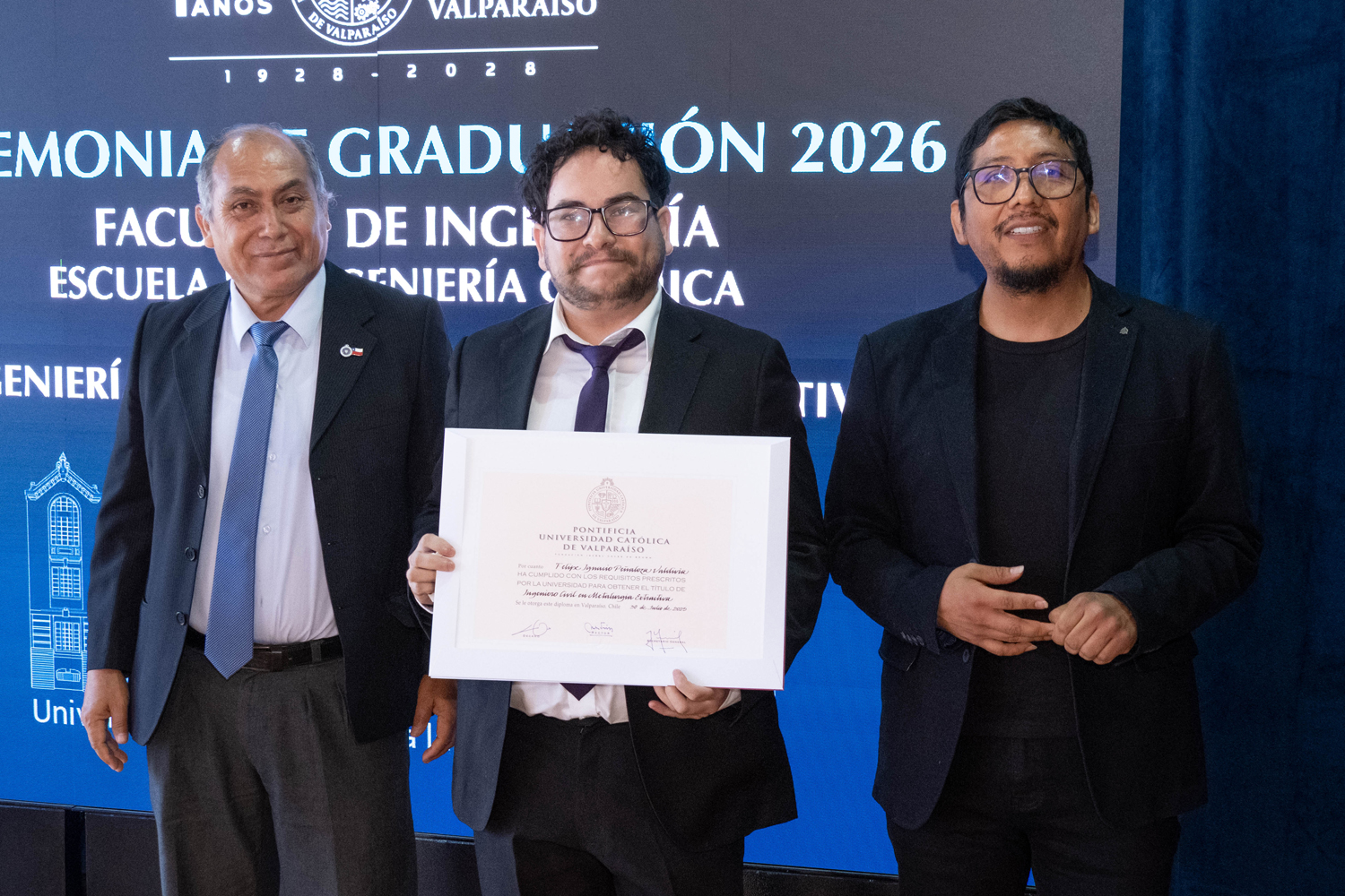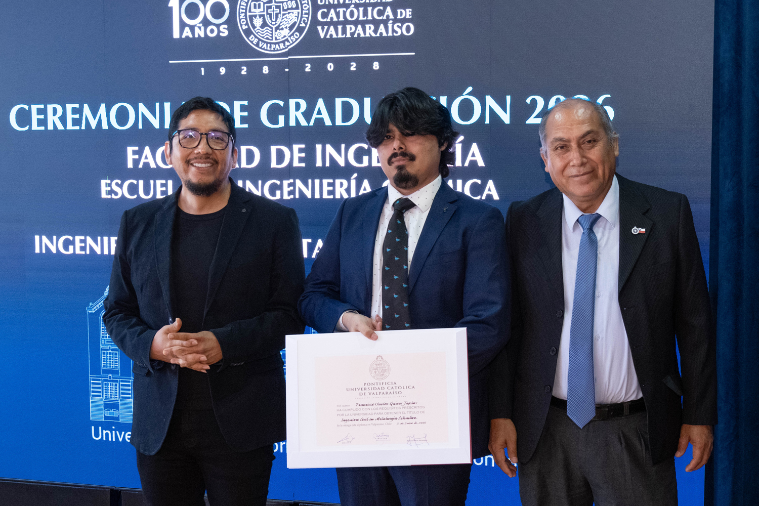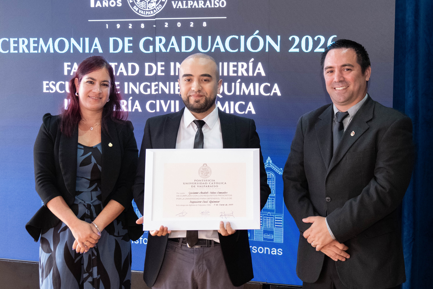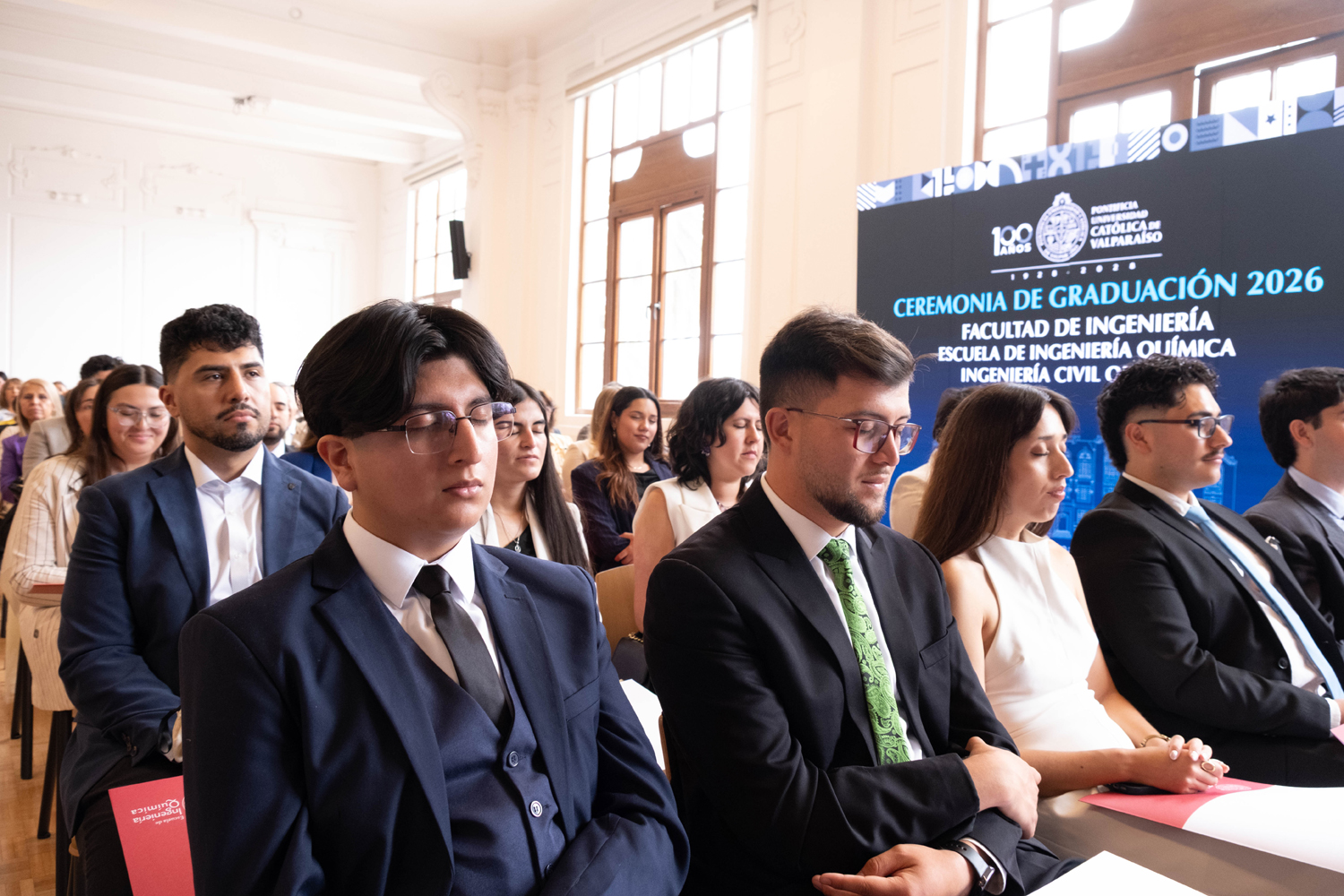 La jornada del miércoles 14 de enero estuvo marcada por la titulación de 49 egresados y egresadas de Ingeniería Civil Química. Posteriormente, el jueves 15 de enero se realizó la ceremonia correspondiente a Ingeniería Civil en Metalurgia Extractiva, en la que 29 profesionales recibieron sus diplomas. Finalmente, el viernes 16 de enero se tituló a 46 nuevos profesionales de Ingeniería Civil de Minas.