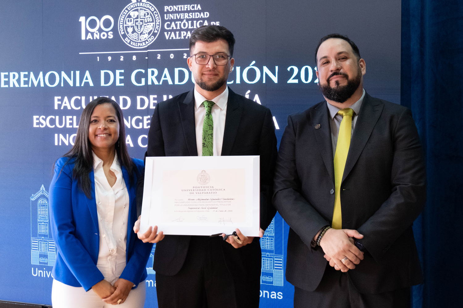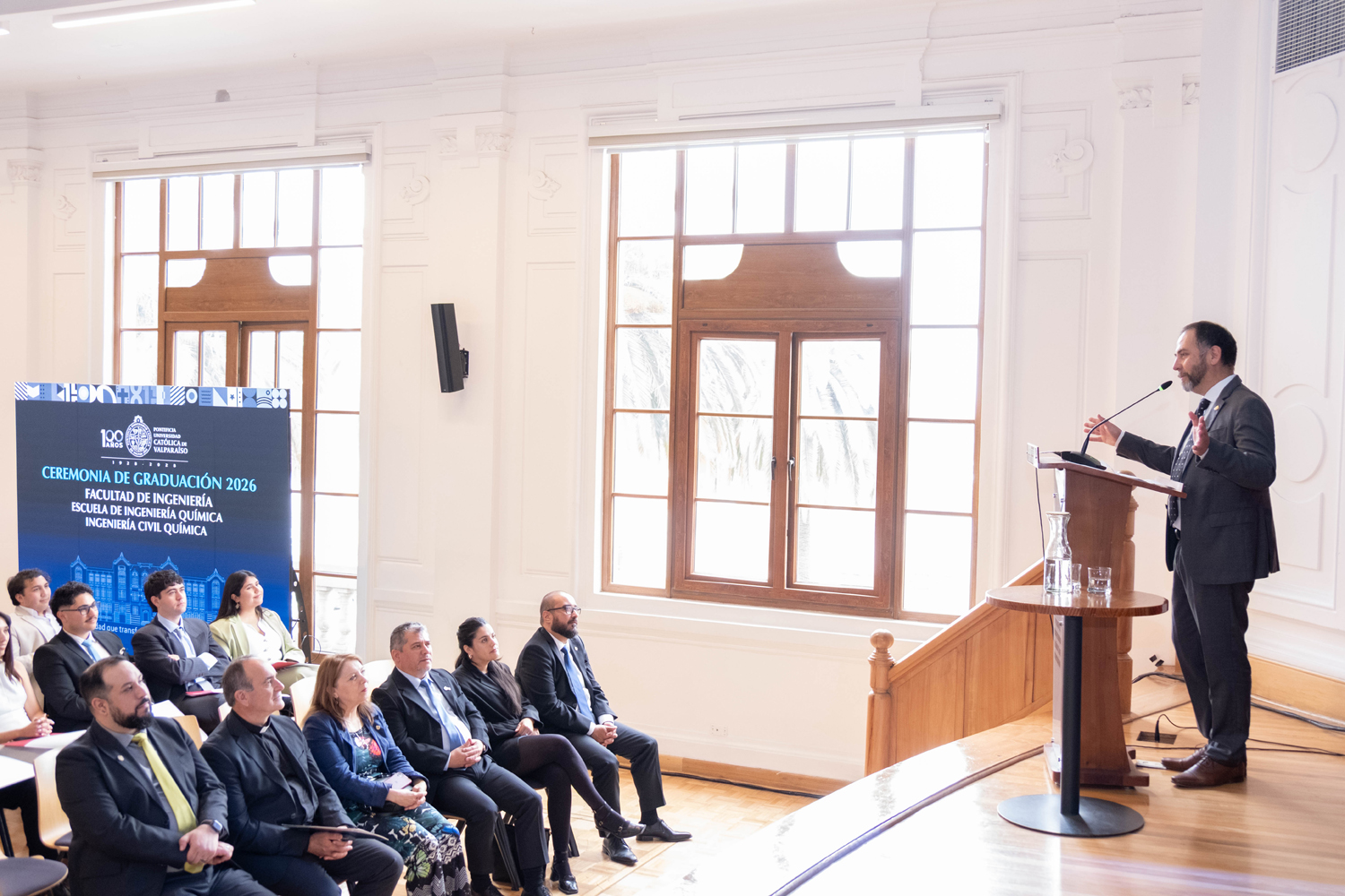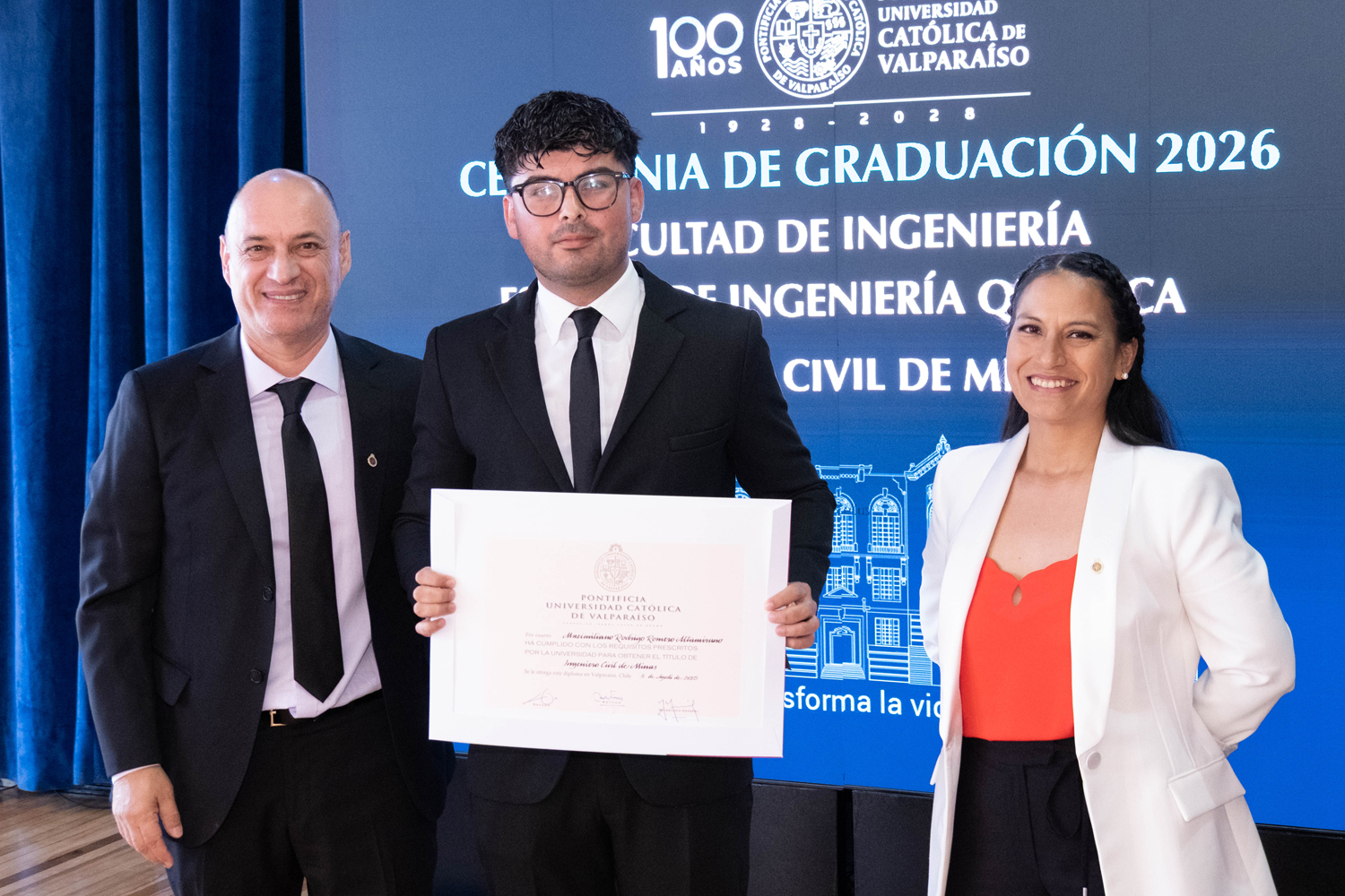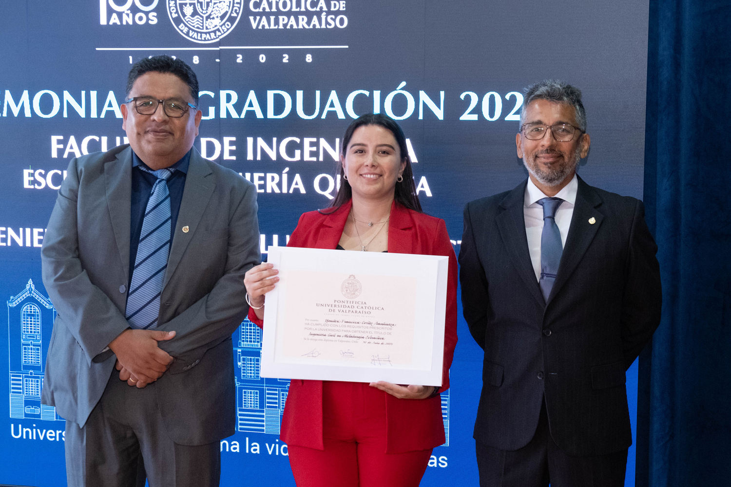 La jornada del miércoles 14 de enero estuvo marcada por la titulación de 49 egresados y egresadas de Ingeniería Civil Química. Posteriormente, el jueves 15 de enero se realizó la ceremonia correspondiente a Ingeniería Civil en Metalurgia Extractiva, en la que 29 profesionales recibieron sus diplomas. Finalmente, el viernes 16 de enero se tituló a 46 nuevos profesionales de Ingeniería Civil de Minas.
