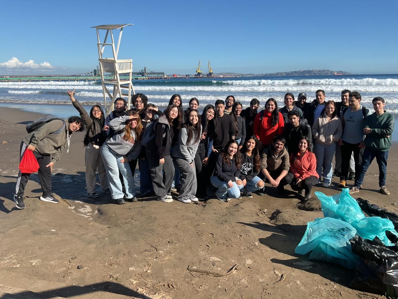 Estudiantes de la carrera de Ingeniería Civil Química de la PUCV llevaron a cabo una limpieza de playas en la localidad de Ventanas, comuna de Puchuncaví, conocida como una de las principales zonas de sacrificio del país.