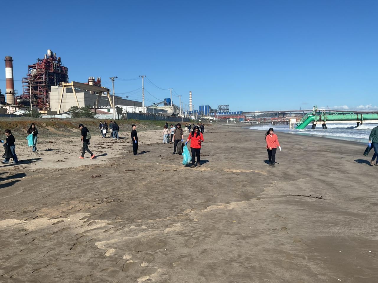 La actividad, realizada el pasado viernes 13 de junio, fue parte de la primera salida a terreno del ramo de Ingeniería Ambiental. Durante la visita, los estudiantes recorrieron el borde costero afectado por residuos, realizando labores de limpieza y observación del entorno para conocer de primera mano los impactos de la actividad industrial sobre los ecosistemas y las comunidades locales.