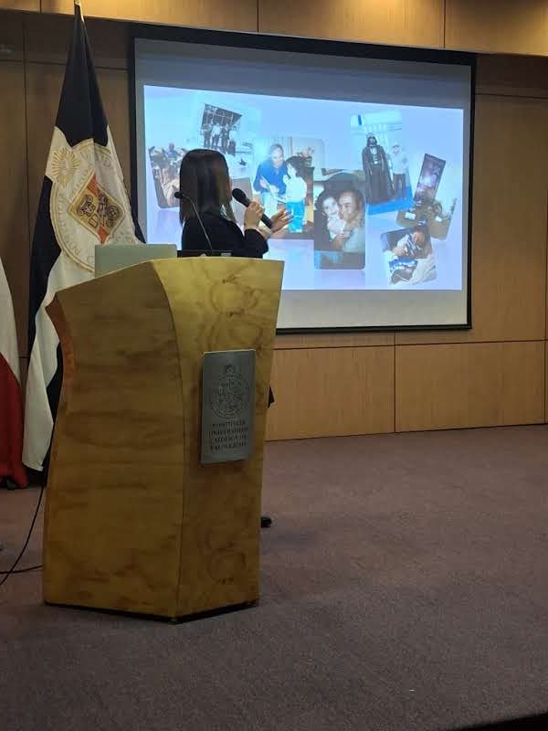 Desde el inicio, Maureen Griffiths estableció una conexión cercana con el público. A través de imágenes personales, relató cómo su vocación por la minería tiene raíces familiares profundas. Al mostrar una fotografía de su abuelo, exminero formado en la Escuela de Minas de Copiapó. “Nos inculcó mucho el valor de la tierra, del arraigo por el desierto. Tengo una historia familiar ligada al cerro que me ha marcado profundamente y es parte de los motivos que me hacen trabajar día a día en la minería”.