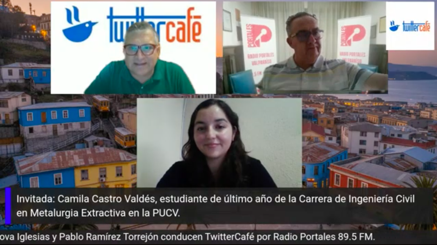 Camila Castro, estudiante de último año de la carrera de Ingeniería Civil en Metalurgia Extractiva de la Escuela de Ingeniería Química de la PUCV, fue invitada al programa Twitter Café de Radio Portales, donde conversó sobre la Gira Metalúrgica PUCV 2026, una iniciativa que busca fortalecer el vínculo entre la Universidad y la industria minera.