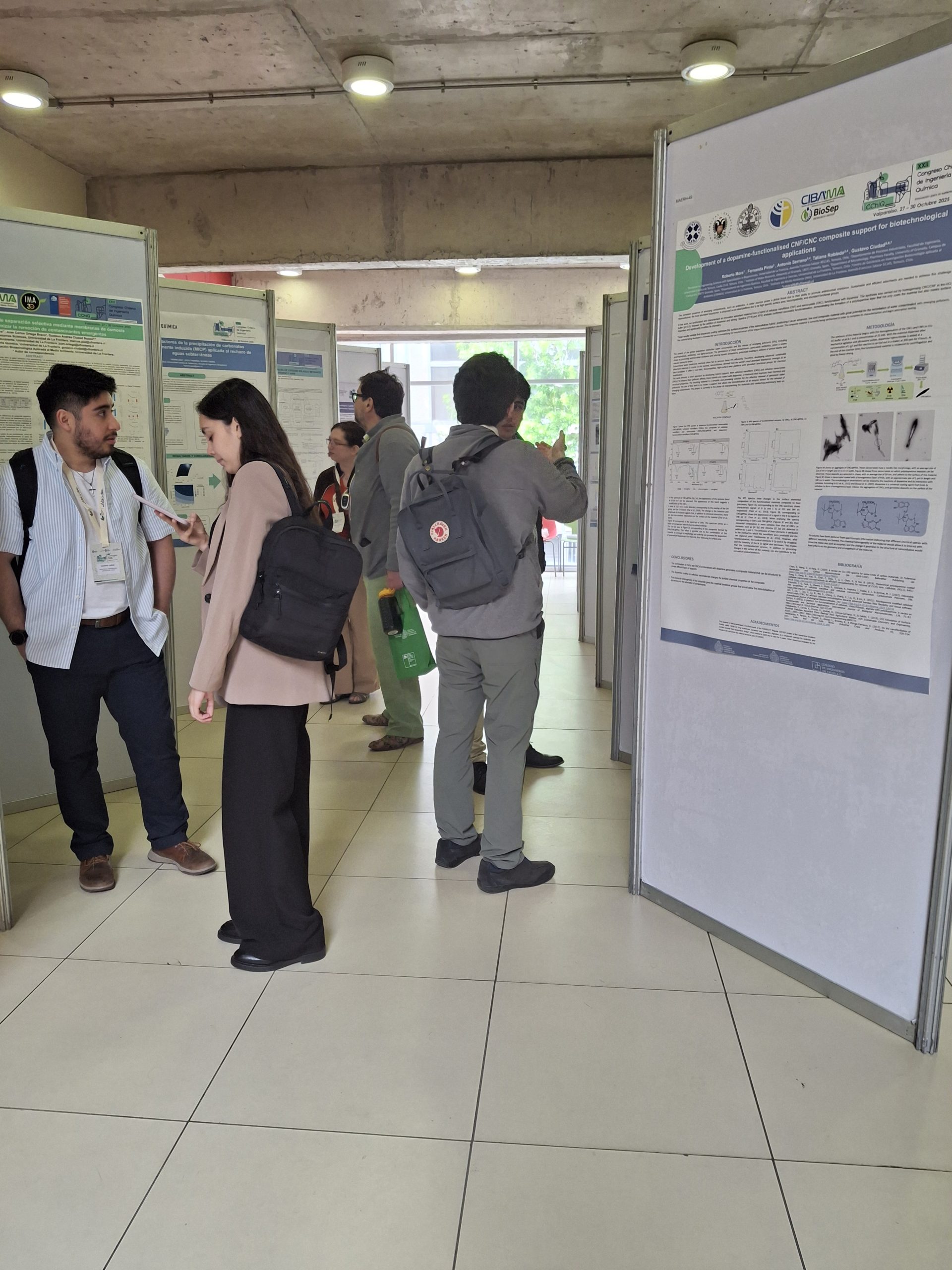Asimismo, se desarrollaron keynotes y paneles especializados con destacados investigadores y representantes de la industria, entre ellos, la Dra. Claudia Altamirano, quien expuso sobre los avances en biotecnología y producción de biofármacos; la Dra. Katherine Ferrada, quien abordó los desafíos de la minería sustentable y la economía circular; el Dr. José Zagal, reconocido investigador nacional, quien presentó sobre predictores de reactividad en materiales avanzados aplicados a celdas de combustible de hidrógeno; y el Dr. Alex Berg y la Dra. Catalina Garrido, quienes compartieron experiencias sobre la transferencia tecnológica y el emprendimiento en biotecnología, relevando el vínculo entre la academia y la empresa.