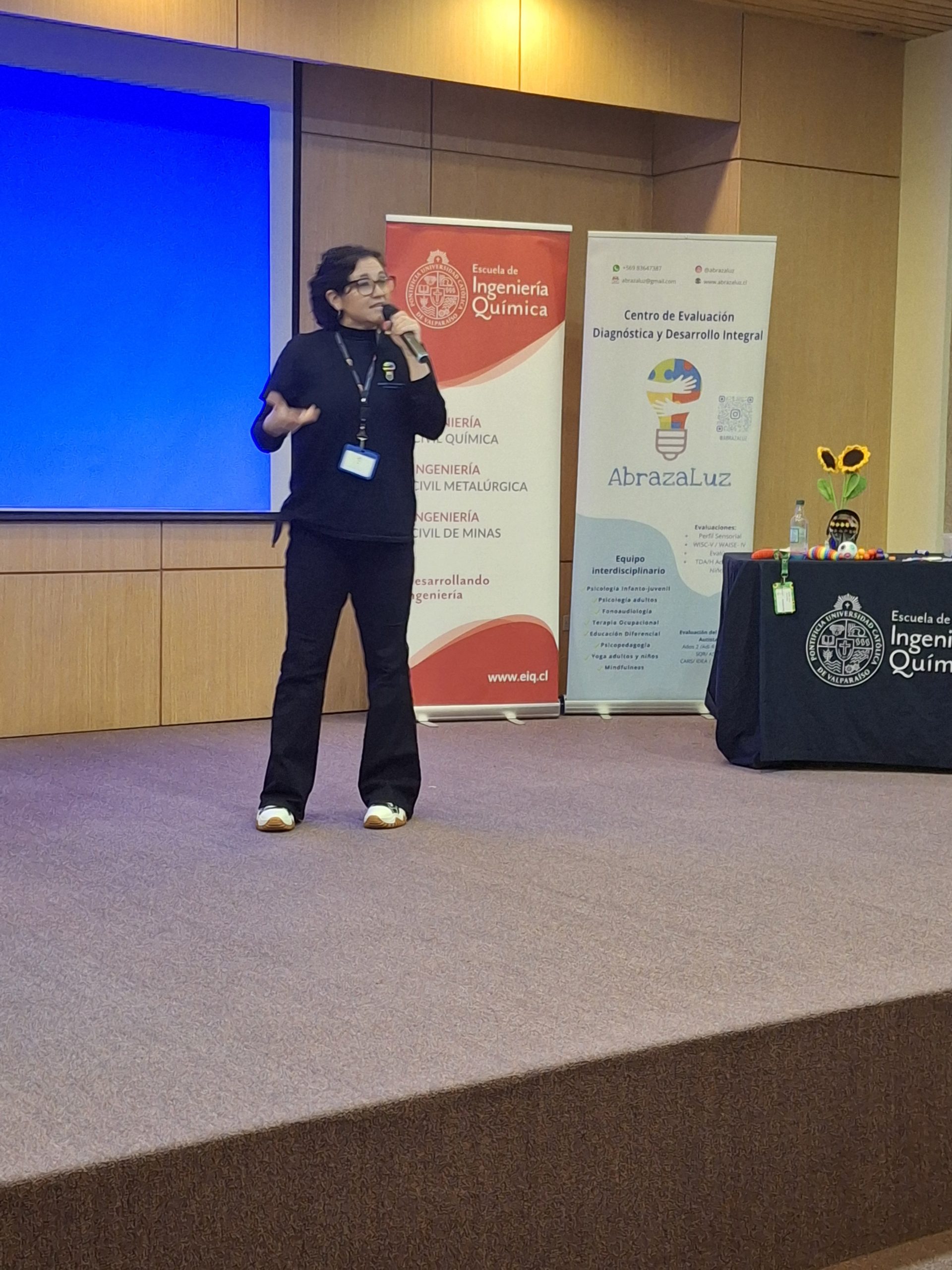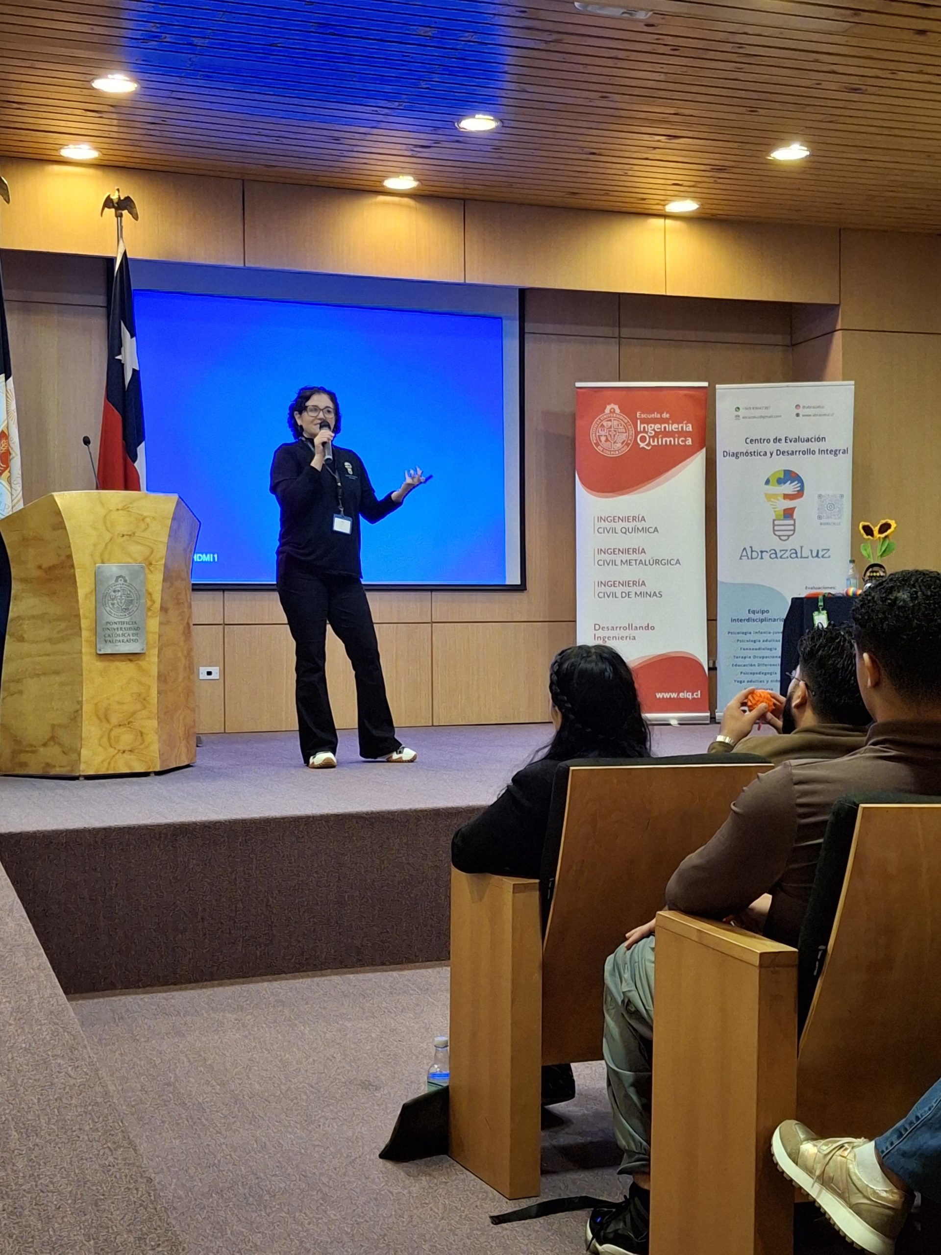 La jornada contó con la participación de destacadas expositoras. Por una parte, Gabriela Aguilar Zamora, directora y fundadora del Centro Abrazaluz, educadora diferencial y psicopedagoga, diplomada en autismo y atención psicoeducativa, especialista en autismo desde la infancia a la adultez, con acreditación internacional en ADOS-2 y ADI-R, y más de 20 años de experiencia en neurodivergencia. Además, cuenta con formación como técnico en enfermería de nivel superior y 12 años de experiencia en el área.