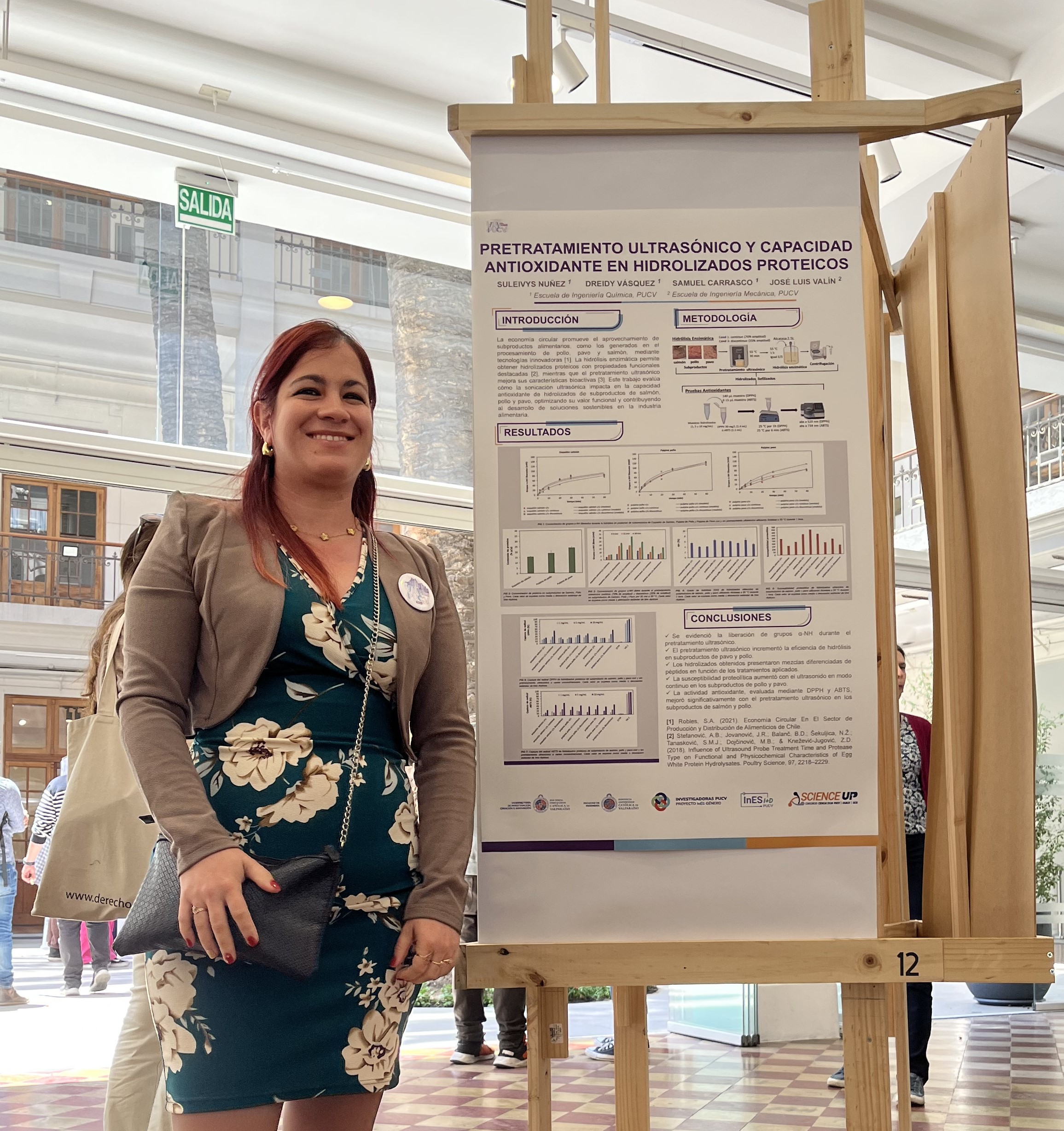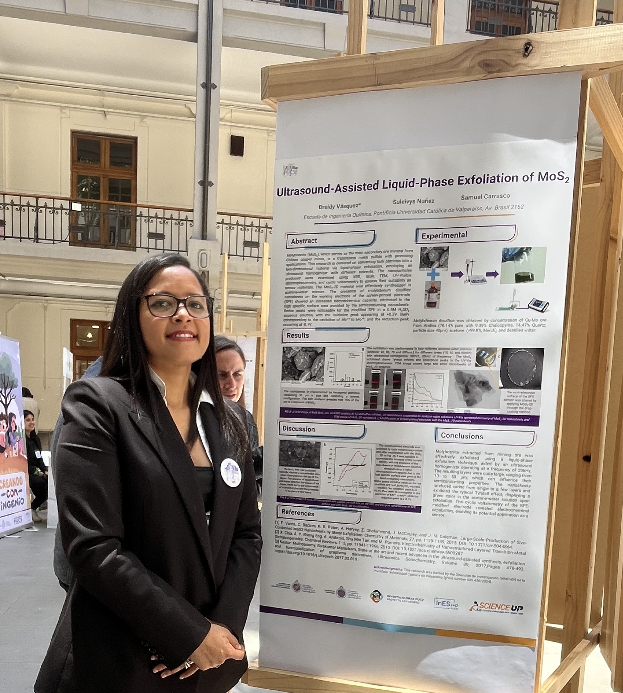 El evento culminó con una feria de Investigación, Creación e Innovación, donde las académicas de la EIQ presentaron sus proyectos de investigación. La Dra. Dreidy Vásquez exhibió su póster titulado “Ultrasound-assisted liquid-phase exfoliation of MoS2”, mientras que la Dra. Suleivys Nuñez presentó el póster “Pretratamiento ultrasónico y capacidad antioxidante en hidrolizados proteicos”.
