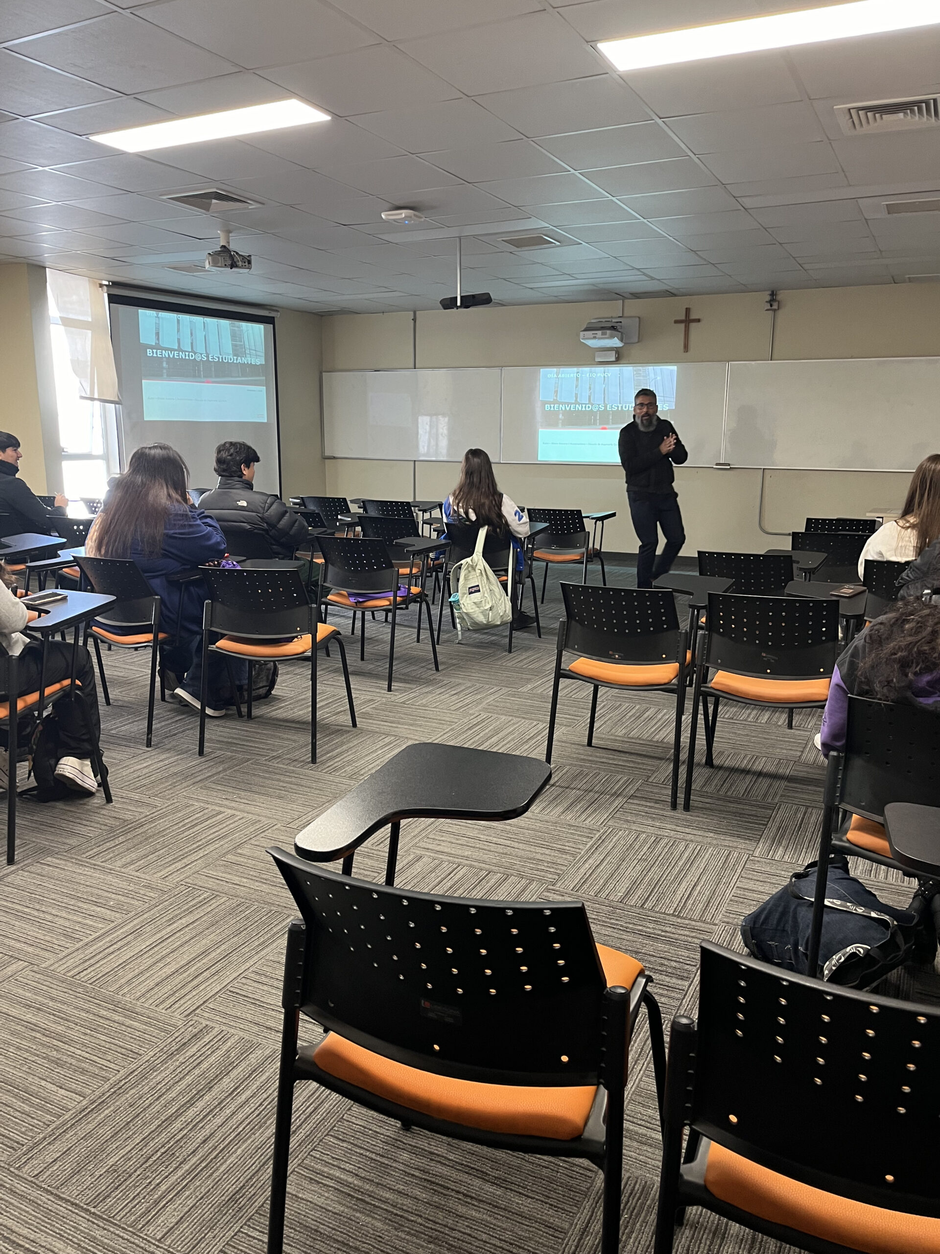 La jornada se dio inicio con la acreditación de los visitantes en el hall central del edificio de la Escuela, para luego participar de las charlas por carrera, impartidas por los profesores de la EIQ, Suleivys Nuñez (Ingeniería Civil Química), Álvaro Aracena (Ingeniería Civil Metalúrgica) y Daniel Pinto (Ingeniería Civil de Minas). En estas instancias los estudiantes pudieron conocer más sobre la Escuela, sus programas y la vida universitaria.