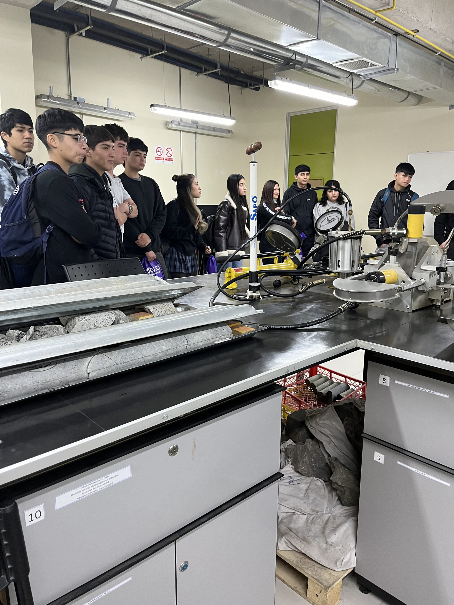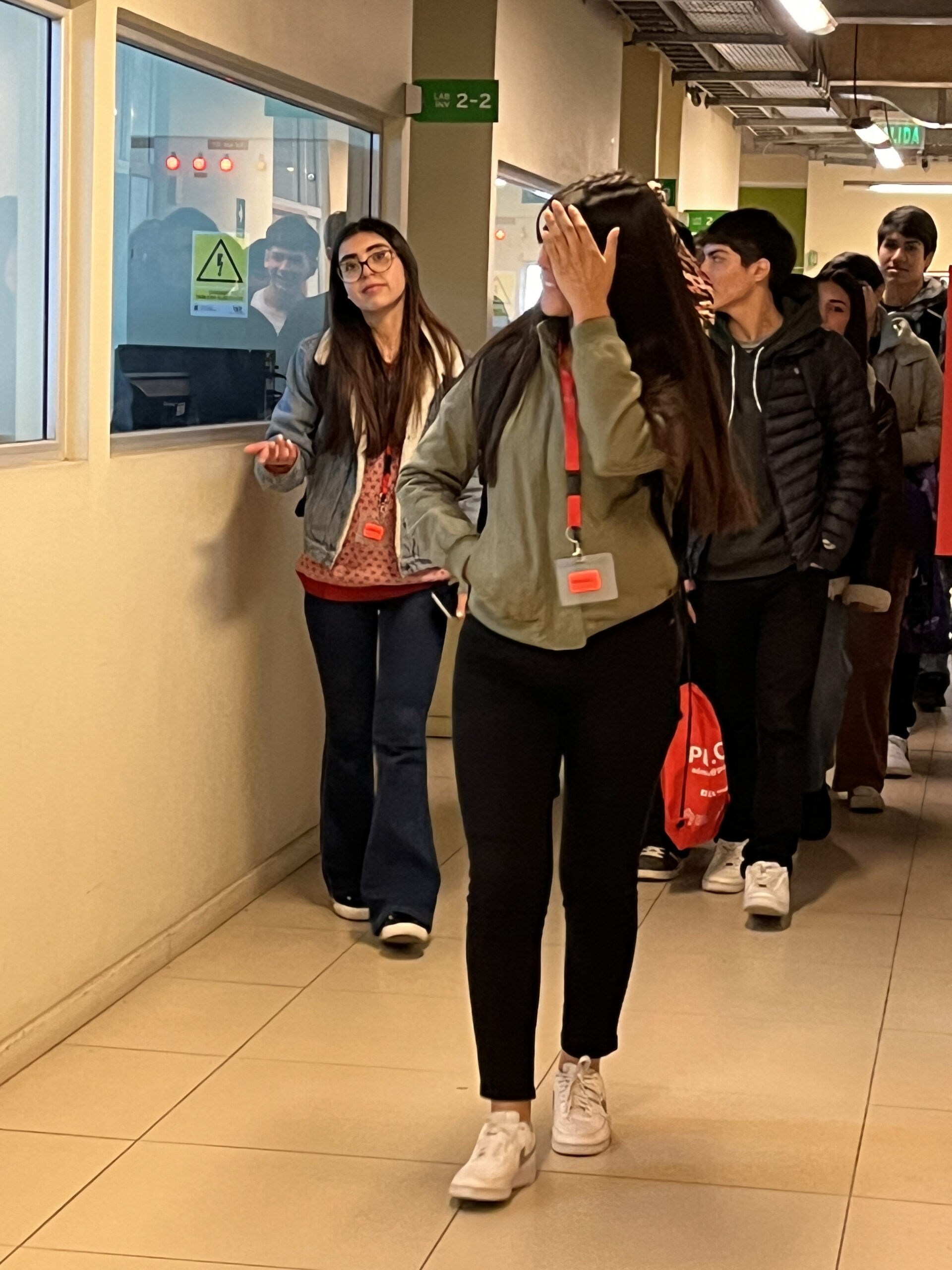 Luego se realizó el habitual recorrido por dependencias de la EIQ, donde los visitantes pudieron conocer las aulas, laboratorios, áreas de estudio, auditorio, oficinas de Dirección, estatua de Kai F. Peronard, biblioteca de la Facultad y La Caverna, entre otros.