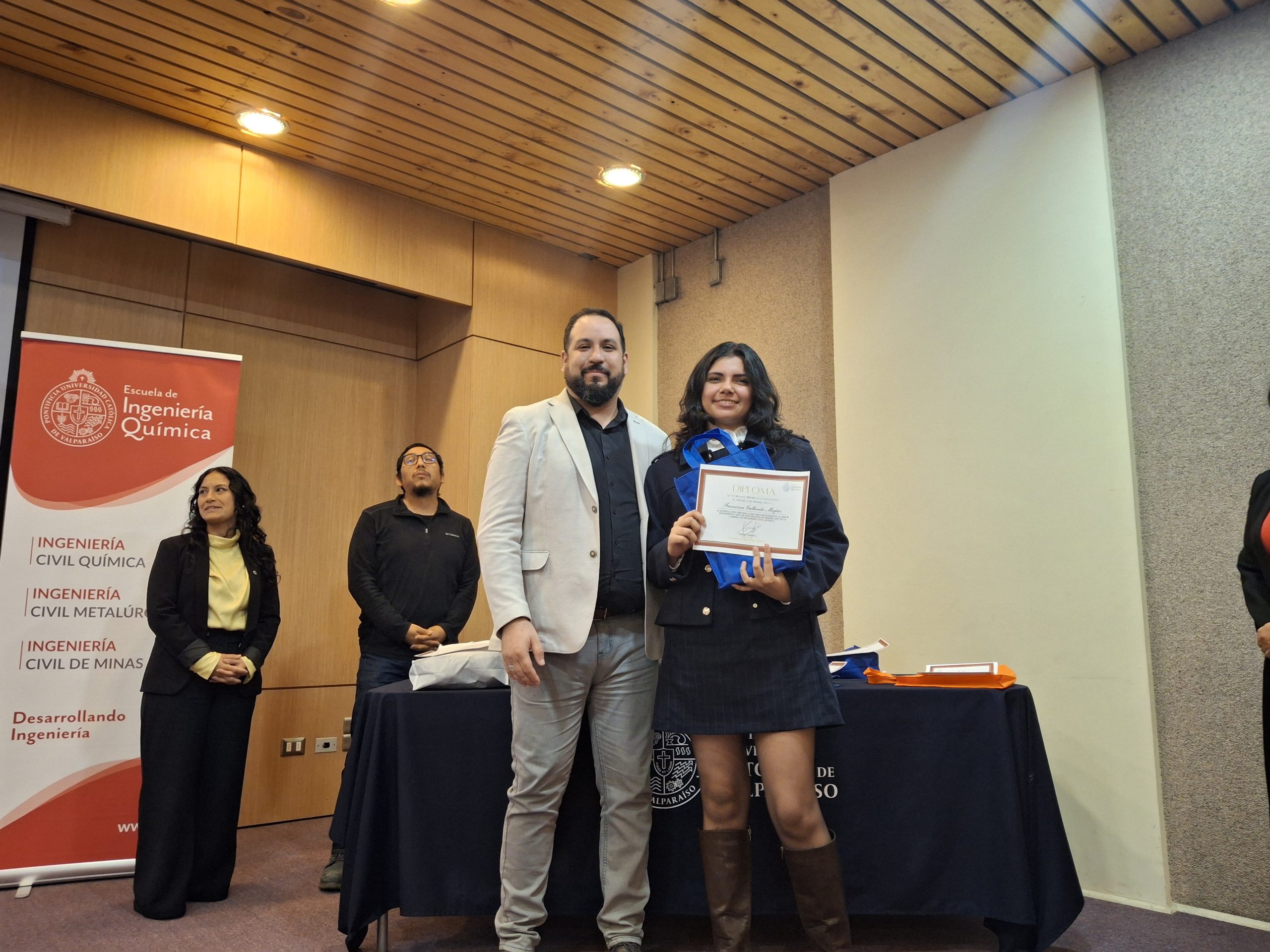 El pasado jueves 23 de abril se desarrolló la Ceremonia de Premiación de Estudiantes y Licenciados Destacados de la Escuela de Ingeniería Química de la PUCV, instancia que reunió a autoridades, profesores, estudiantes y familiares de quienes fueron distinguidos.
